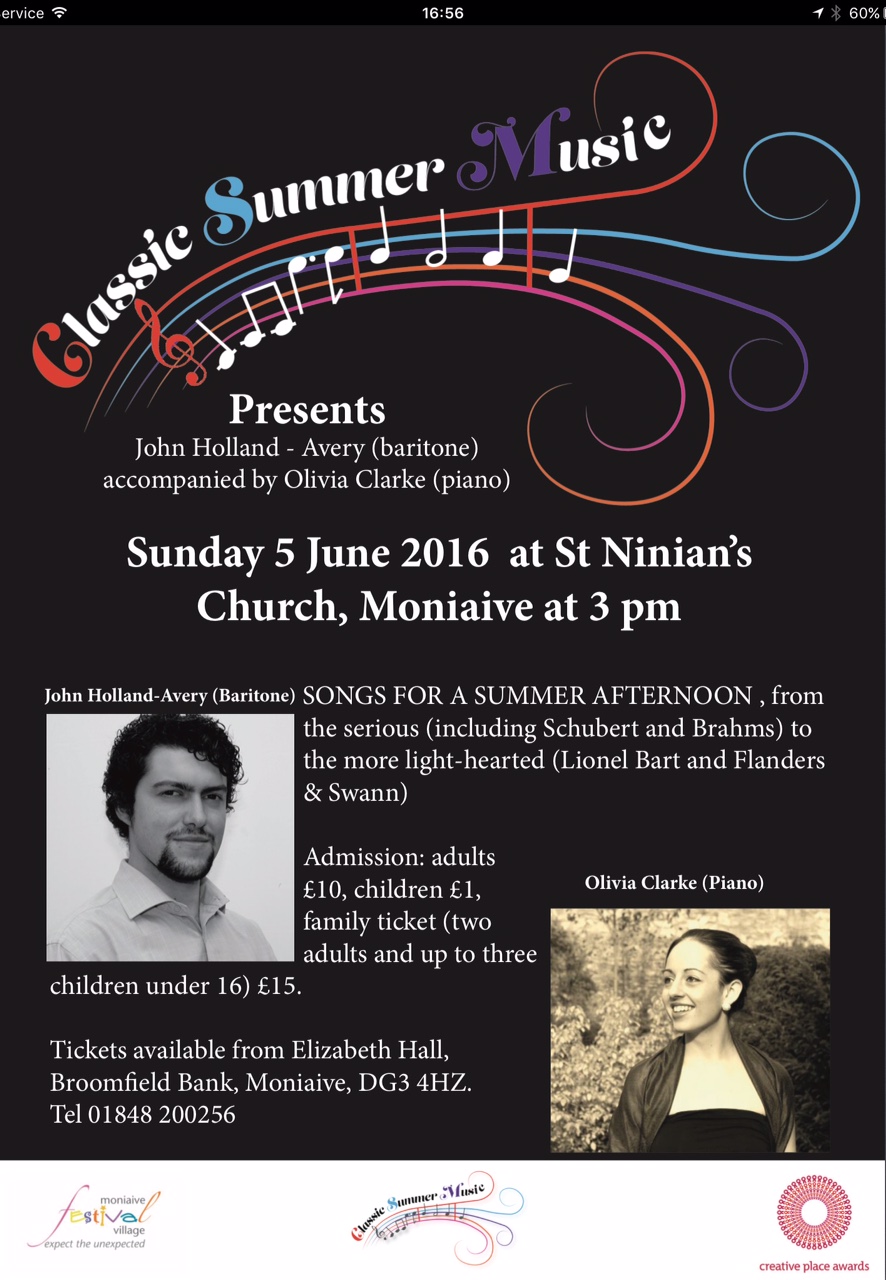 Sunday June 5th at St Ninians Church Moniaive 3pm